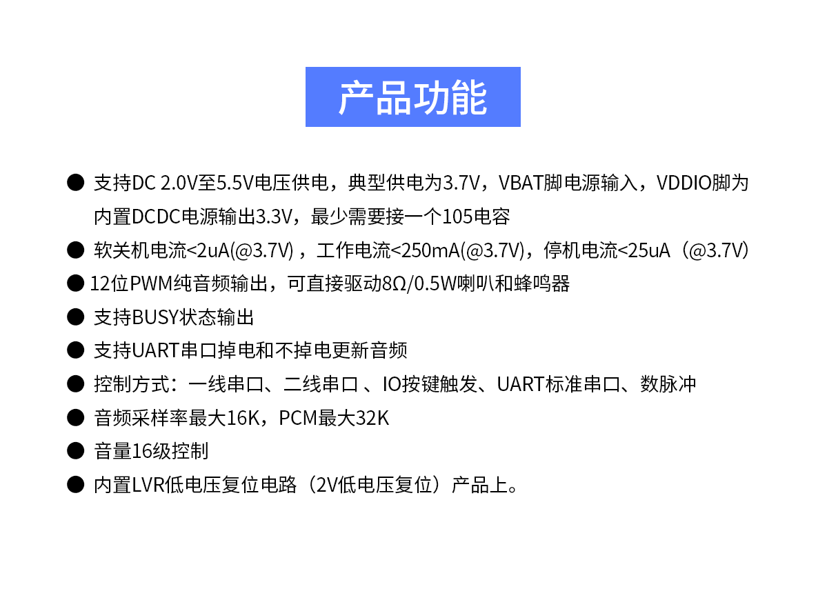 ★ 支持UART串口掉電和不掉電更新音頻